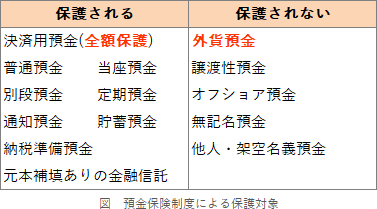 - 日本国内に本店のある金融機関が取り扱う預金等であっても、外貨預金や譲渡性預金は預金保険制度による保護の対象とならない。