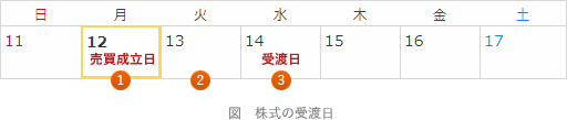 - 国内の証券取引所に上場している外国株式を国内委託取引により売買した場合の受渡日は、国内株式と同様に、売買の約定日から起算して3営業日目となる。