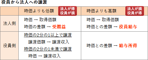 - 会社が所有する資産を適正な時価よりも低い価額で役員に譲渡した場合、その適正な時価と譲渡価額との差額が、その役員の給与所得の収入金額となる。