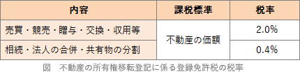 - 所有権移転登記に係る登録免許税の税率は、登記原因が贈与による場合と相続による場合では異なる。