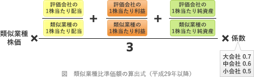 - 類似業種比準方式における比準要素は、1株当たりの配当金額、1株当たりの売上高および1株当たりの純資産価額(帳簿価額によって計算した金額)である。