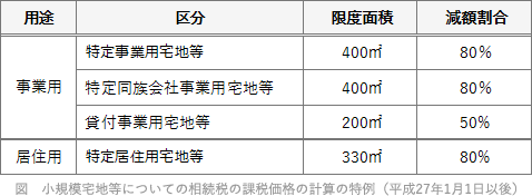 - 「小規模宅地等についての相続税の課税価格の計算の特例」における特定居住用宅地等については、330㎡を適用対象面積の上限として評価額の80%を減額することができる。